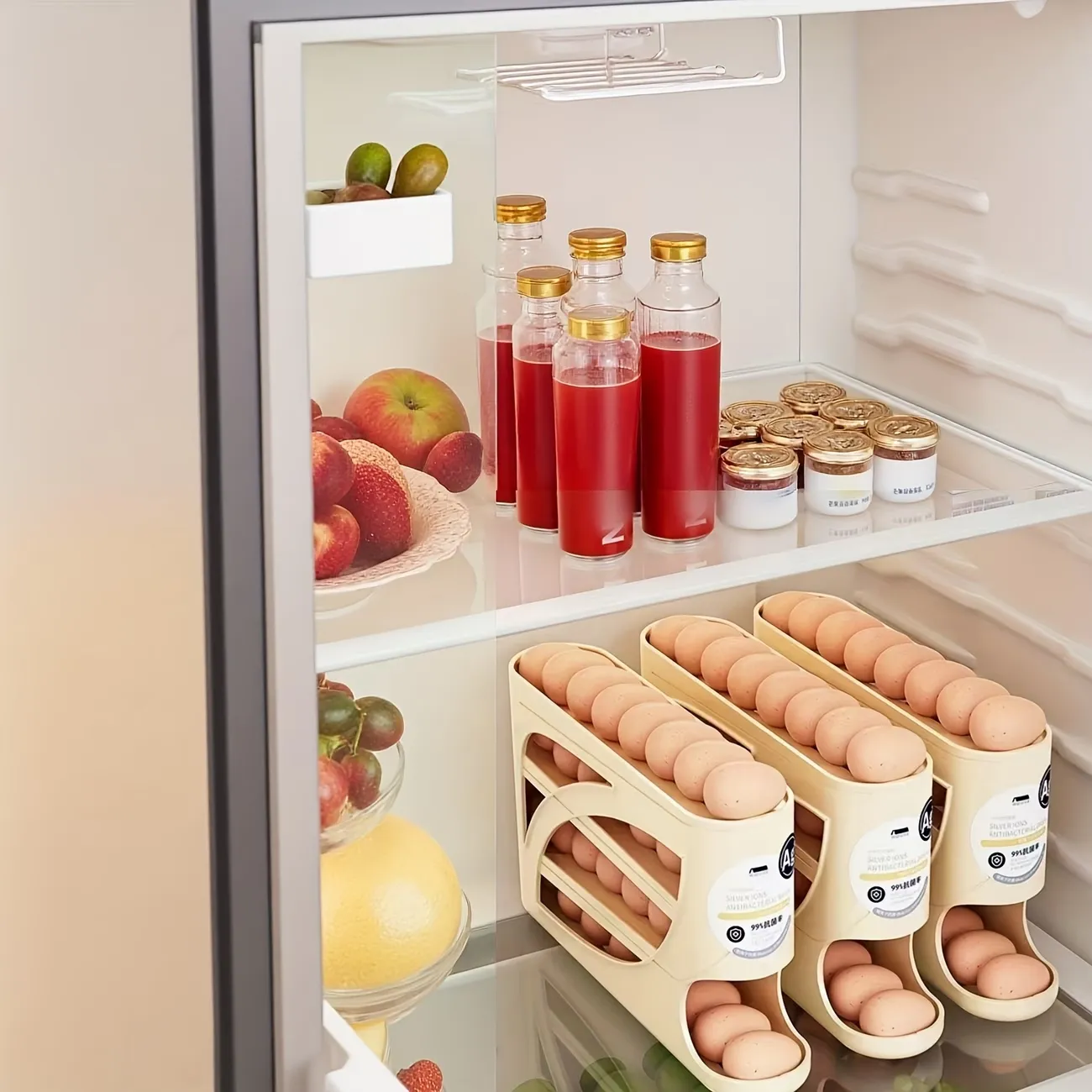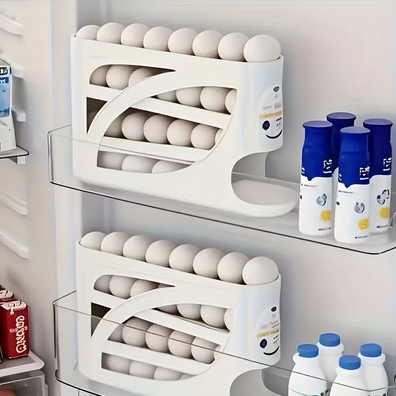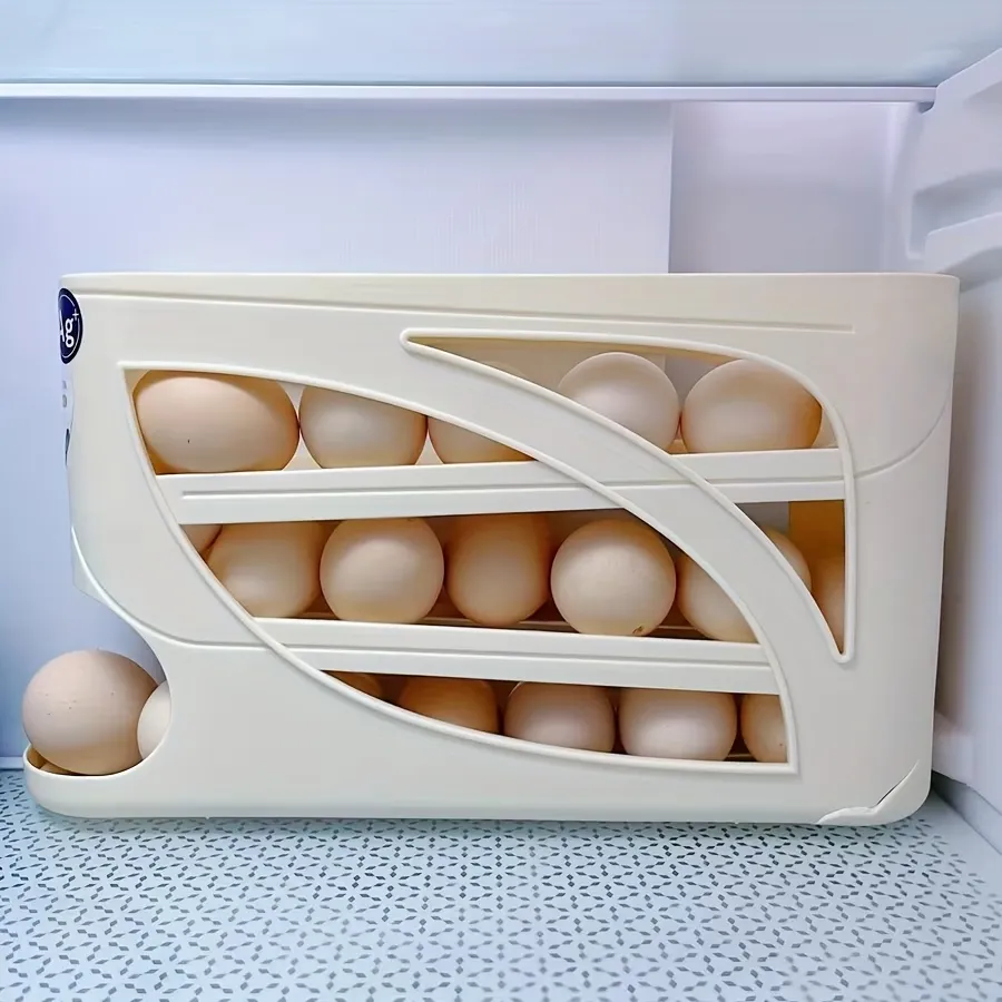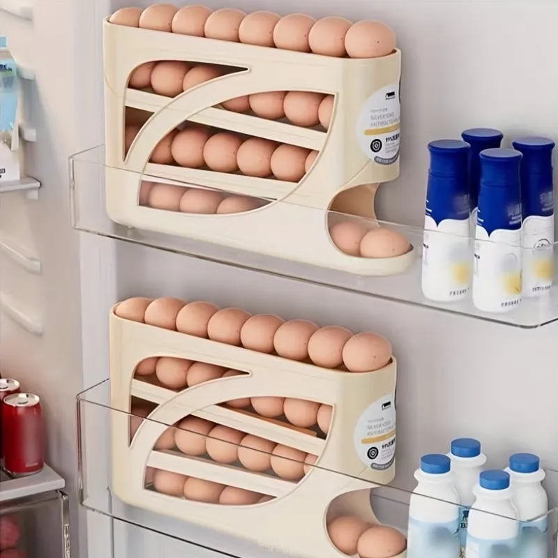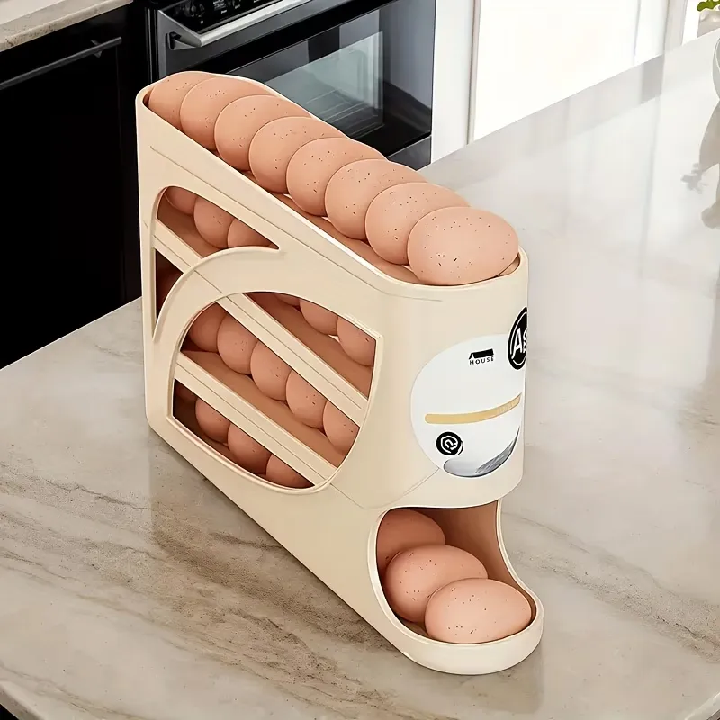 Organizador vertical para huevos con sistema por gravedad. Práctico, compacto y decorativo.